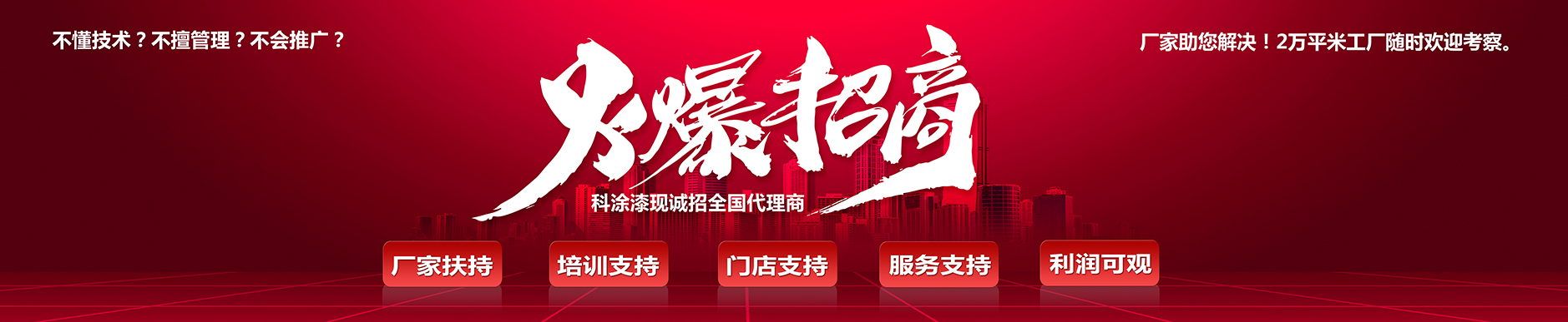 代理涂料品牌,我們會有一套系統的流程和方案,科涂漆有專門的特別支持計劃,以促進我們的合作伙伴變得更大更強。...